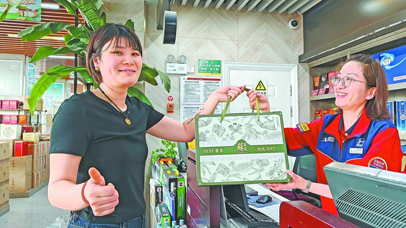 端午節(jié)臨近,江蘇徐州石油抓住消費(fèi)機(jī)遇,在區(qū)域內(nèi)22座加能站開(kāi)展每周五充值送好禮活動(dòng),充值一定金額客戶(hù)可免費(fèi)兌換粽子禮盒。圖為5月7日睢寧紅葉加能站員工向客戶(hù)贈(zèng)送粽子禮盒。劉茲文 攝